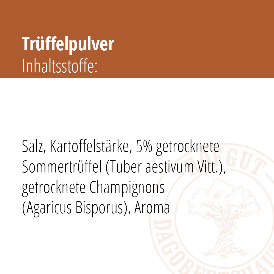 Entstanden aus unserer Kooperation mit den italienischen Trüffelspezialisten von Giuliano Tartufi veredelt dieses Pulver eine Vielzahl von Gerichten. Flexibler einzusetzen als Trüffelöl werden Sie an diesem äußerst ergiebigen Pulver lange Freude haben.