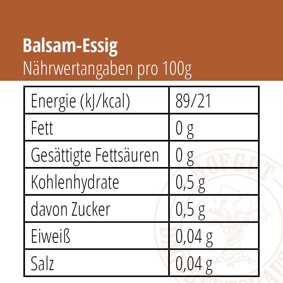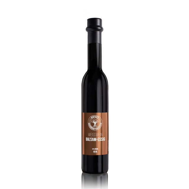 Ein außergewöhnlicher Balsam-Essig entsteht nur aus außergewöhnlichem Rohmaterial. In unserem Fall sind dies hochwertige Weißweine von der Loire und aus dem Burgund. Diese reiften in einer schwäbischen Essigmanufaktur zu unserem ungemein fruchtigen und eleganten Hofgut-Essig. Mit seinem milden 6% Säuregehalt eignet er sich perfekt für alle Salatdressings und ist selbst solo probiert ein absoluter Genuss.