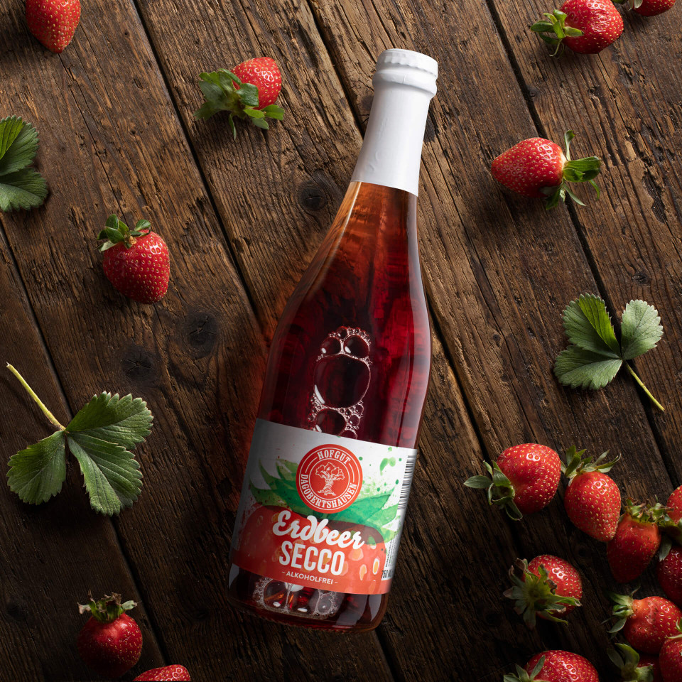 Ein Familienweingut aus dem Rheinhessischen Flörsheim-Dalsheim produziert für uns diese alkoholfreie Erdbeer Secco Variante. Pure Erdbeere! Frisch, anregend, süffig und prickelnd. Auch für Kinder ein wahrer Genuss. Zum Aufgießen eine ideale Basis für alkoholfreie Cocktails.