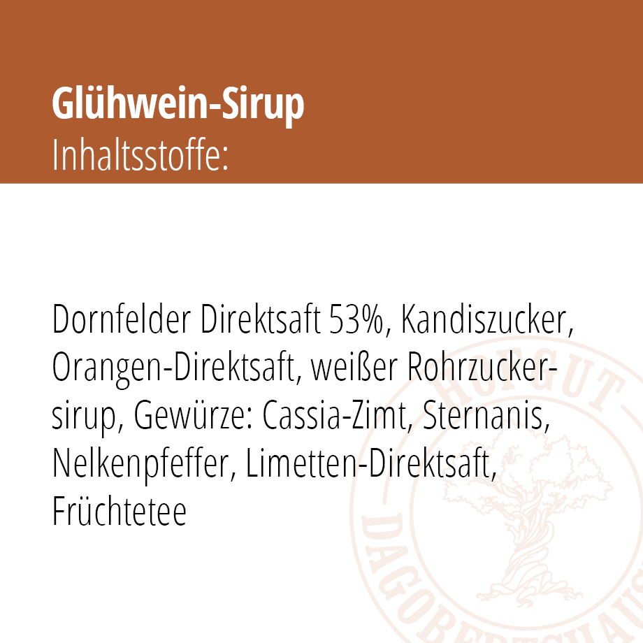 Holen Sie sich den Geschmack des original Dagobertshäuser Weihnachtsmarkt-Glühweins nach Hause. Perfekt abgestimmt auf die Zugabe von zwei Flaschen (á 0,75l) leckeren Rotweins (ergibt 1,75l „Glühwein“).