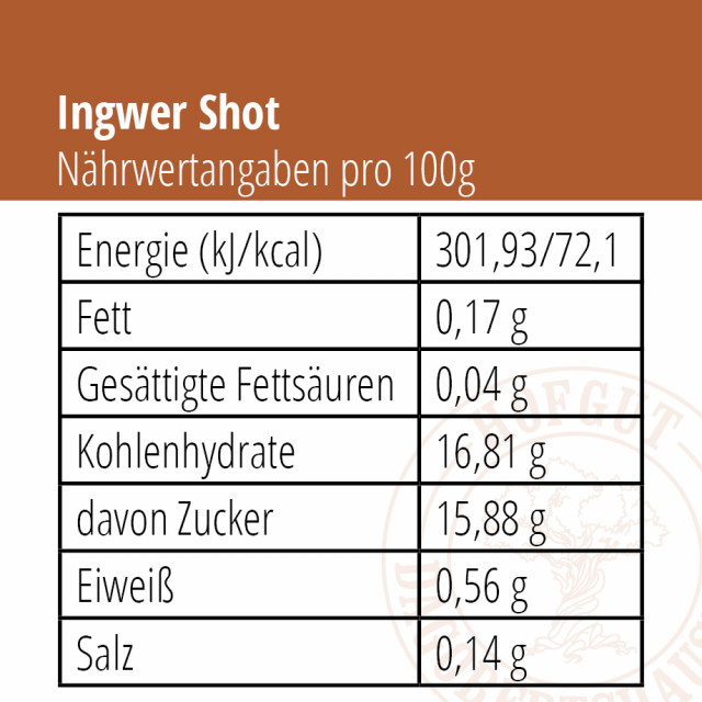 Der Anbau von Ingwer in Dagobertshausen verbindet innovativen Pioniergeist, landwirtschaftliches Geschick und einen nachhaltigen Ansatz gleichermaßen. In unserem Orange-Ingwer-Shot machen wir die volle Wirksamkeit und Kraft des regionalen Ingwers ganzjährig verfügbar – gesunder Genuss, und das mit gutem Gewissen.