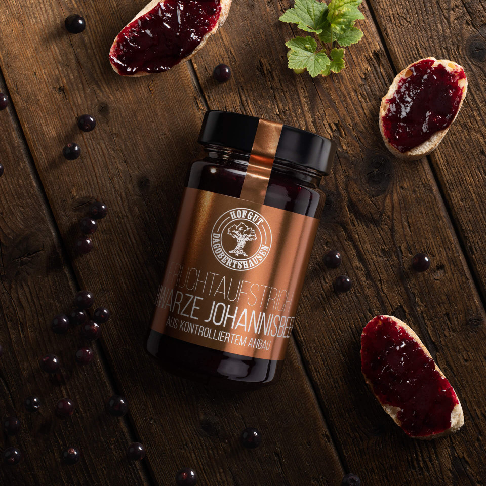 Die schwarzen Johannisbeeren von unseren hofeigenen Feldern verarbeiten wir im Sommer zu unserem leckeren Fruchtaufstrich. Dabei handelt es sich bei unserem Johannisbeerenaufstrich um eine feine Konfitüre ganz ohne Kerne. So kommt der weiche Geschmack noch besser zum Tragen und passt hervorragend zu einem warmen Croissant am Morgen für den perfekten Start in den Tag.